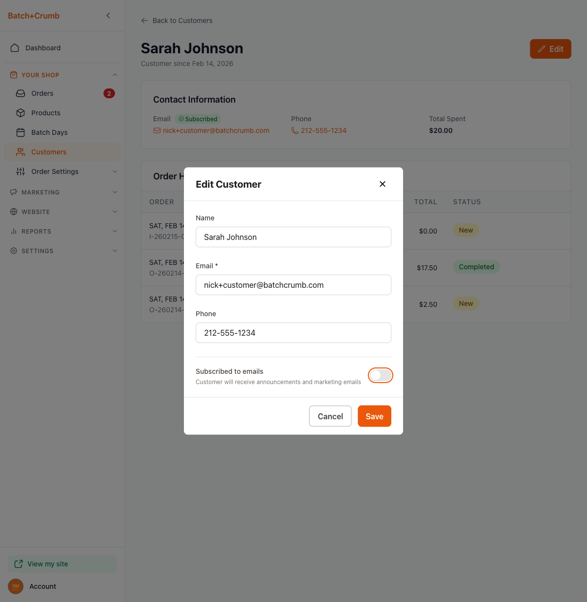 When you send out an announcement — like a new menu drop or a holiday pre-order — it only goes to customers who are subscribed to your emails. Batch52 gives you a simple way to manage who's on that list so you can keep your audience engaged without sending emails to people who don't want them.