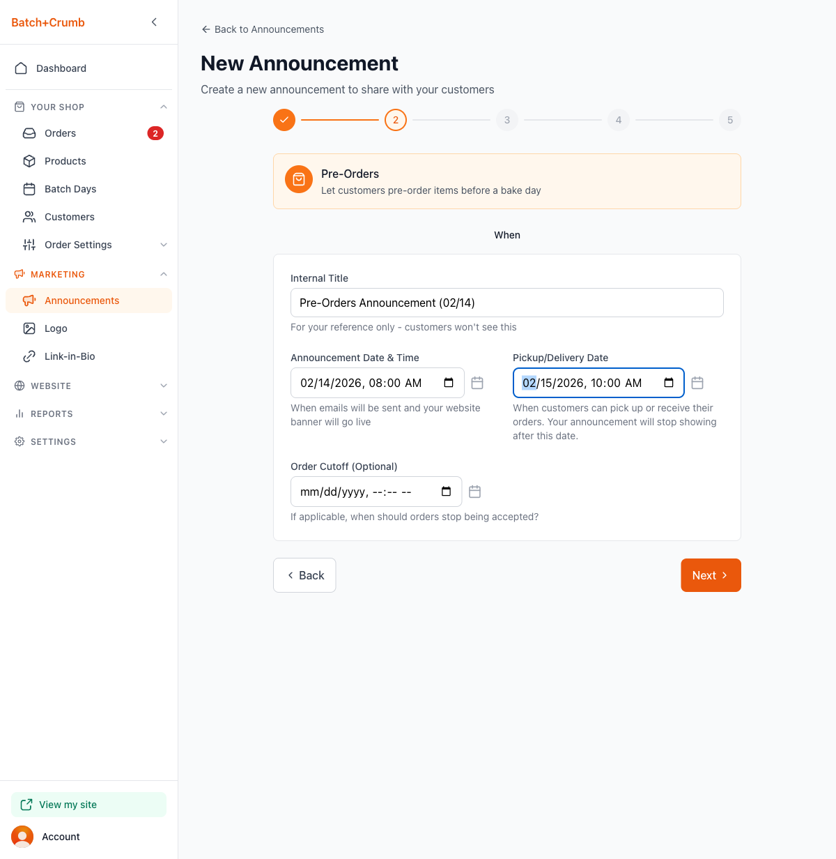 - Pre-Orders — Let customers pre-order items before a bake day