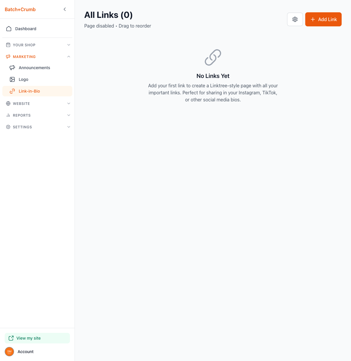 From your admin sidebar, click Marketing, then click Link-in-Bio.