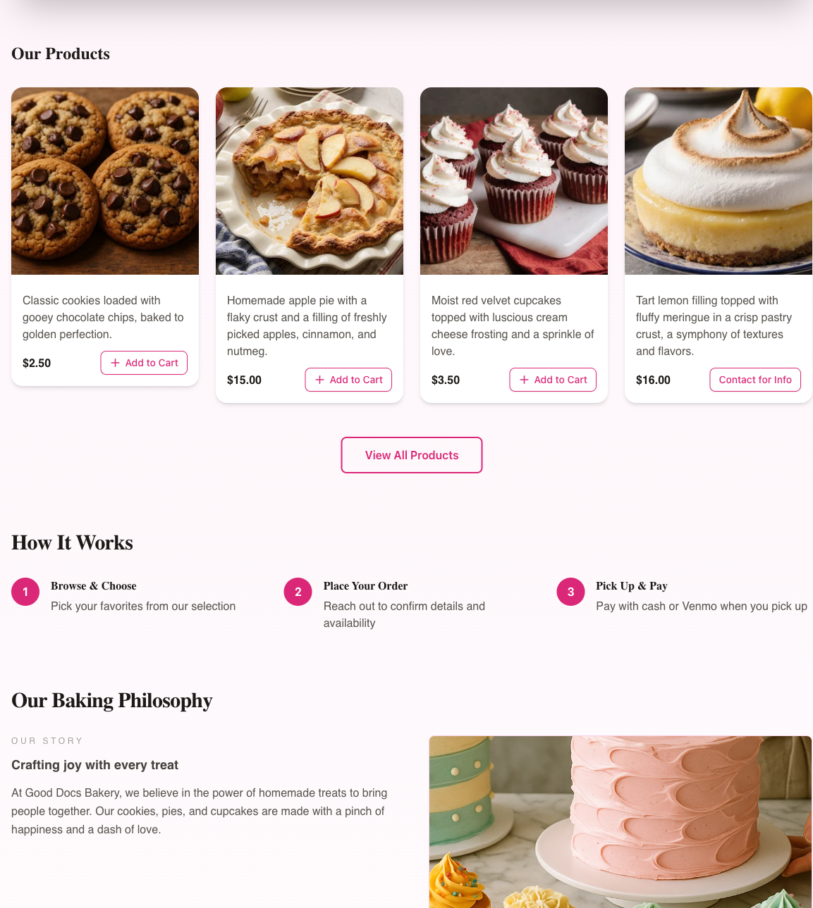 Featured products are the ones that show up in the "Our Products" section on your homepage. If you have a big catalog, featuring lets you spotlight your best sellers or seasonal favorites without overwhelming visitors with everything at once. Products that aren't featured still appear on your full Products page — they just won't be front and center on the homepage.